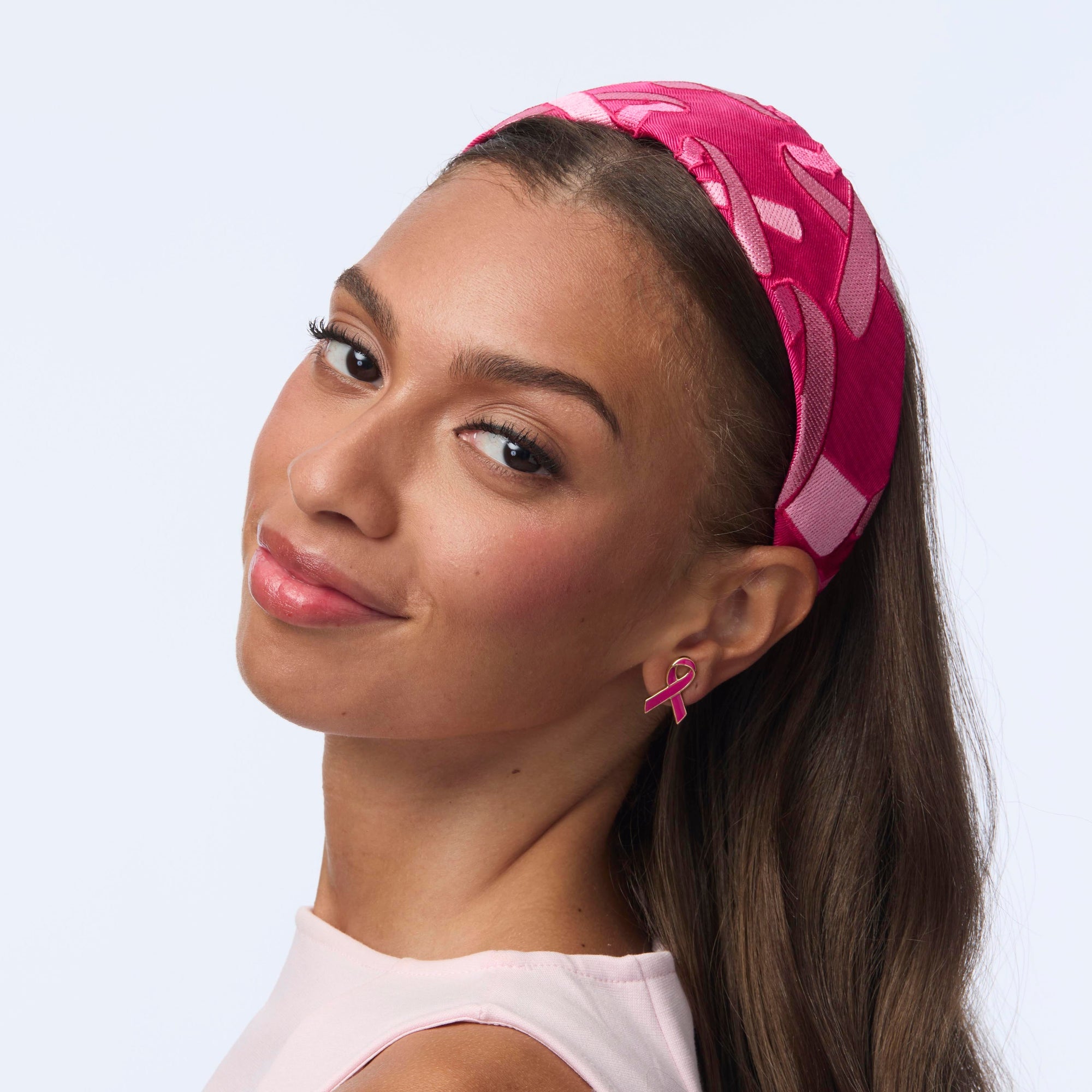 In honor of Breast Cancer Awareness Month, 10% of all proceeds from our Lipstick Pink Brigitte Heart Ribbon Headband will be donated to the American Cancer Society. For more information, visit www.cancer.org.