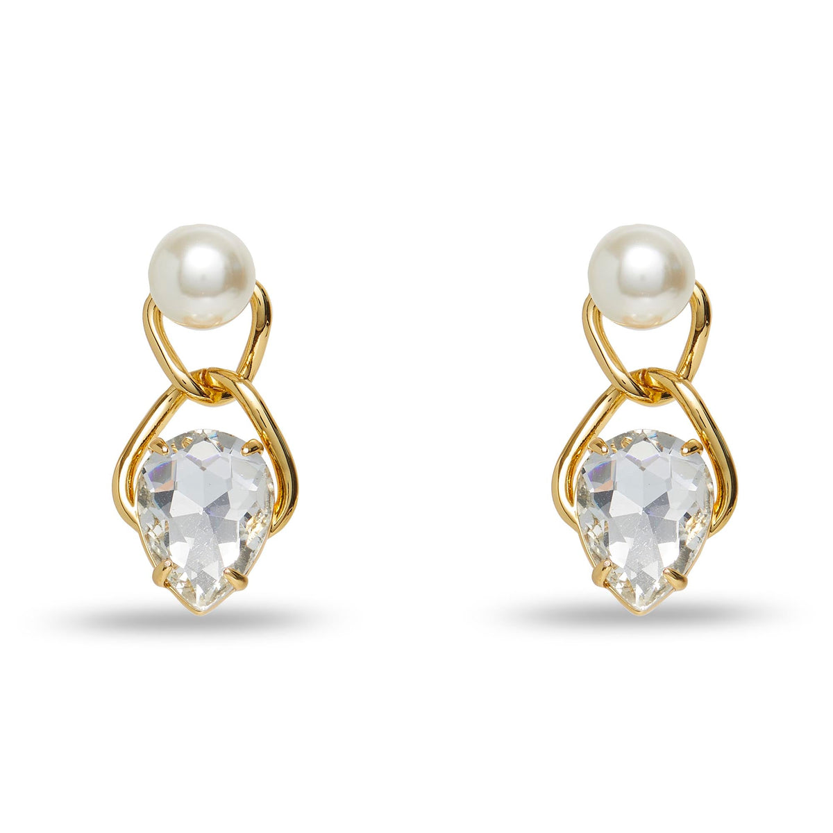 Our Grecian Vessel Earring features a luxe, interlocking design with round pearls and teardrop crystals.