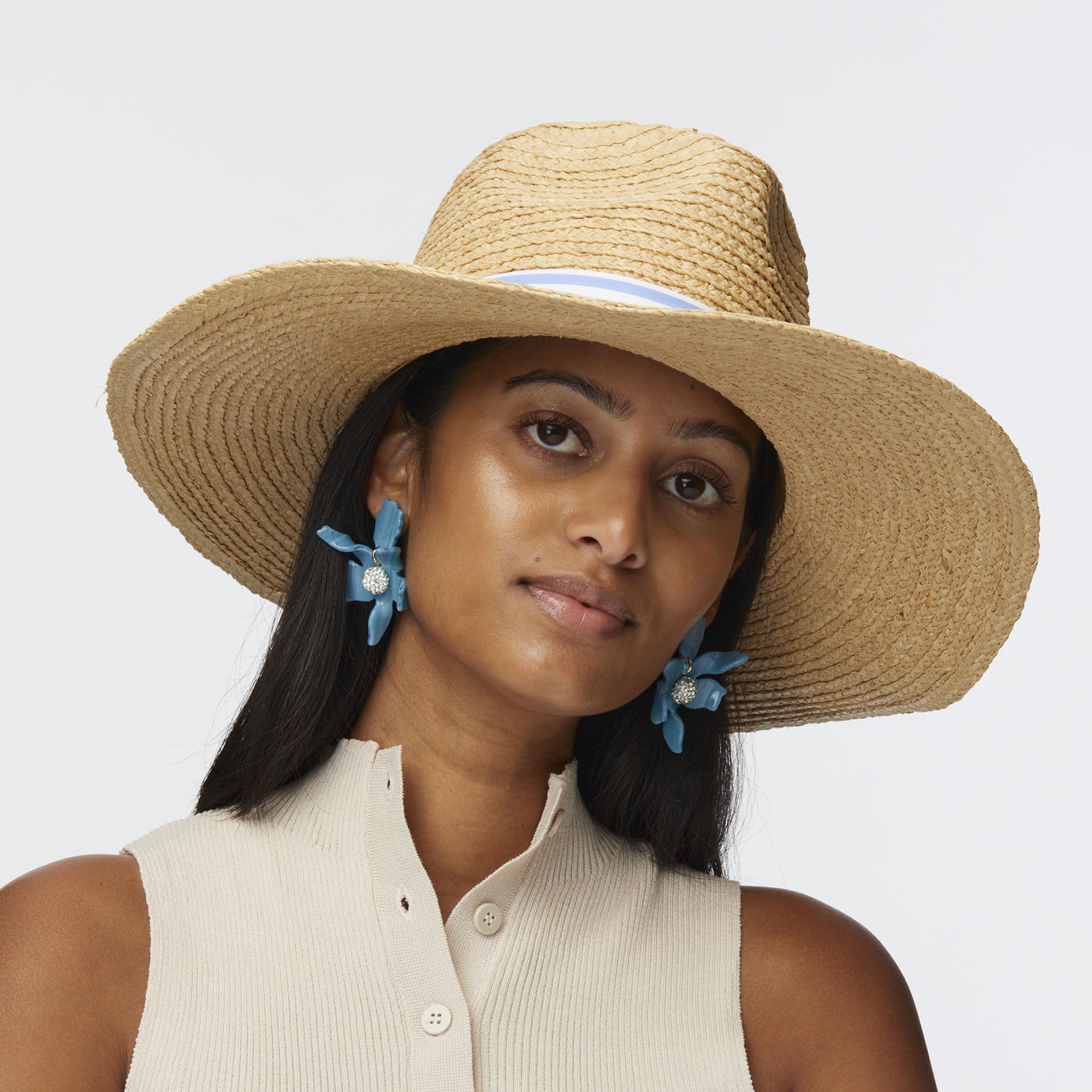 VISTA BLUE LELE SADOUGHI X RENWICK STRIPED BAND STRAW HAT
