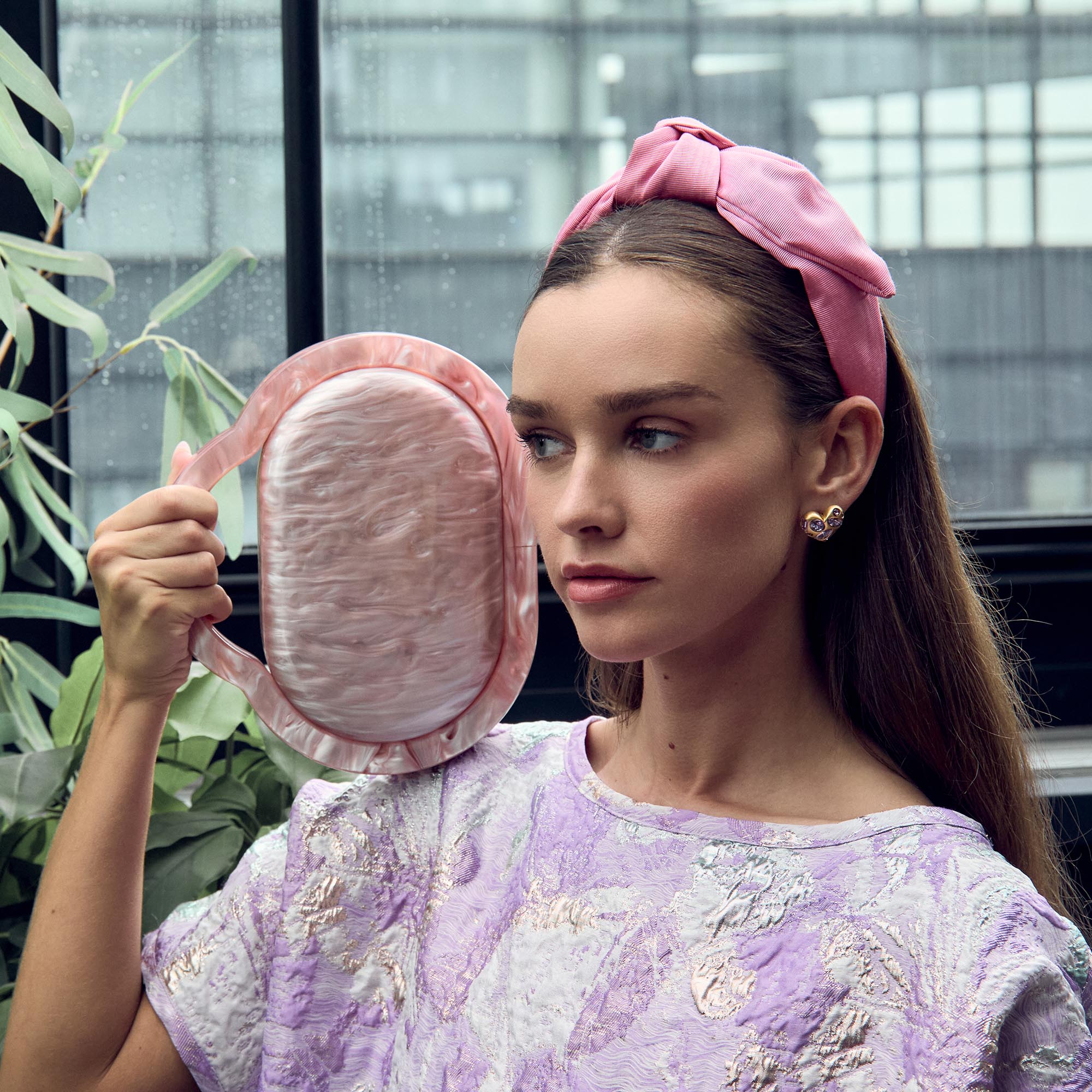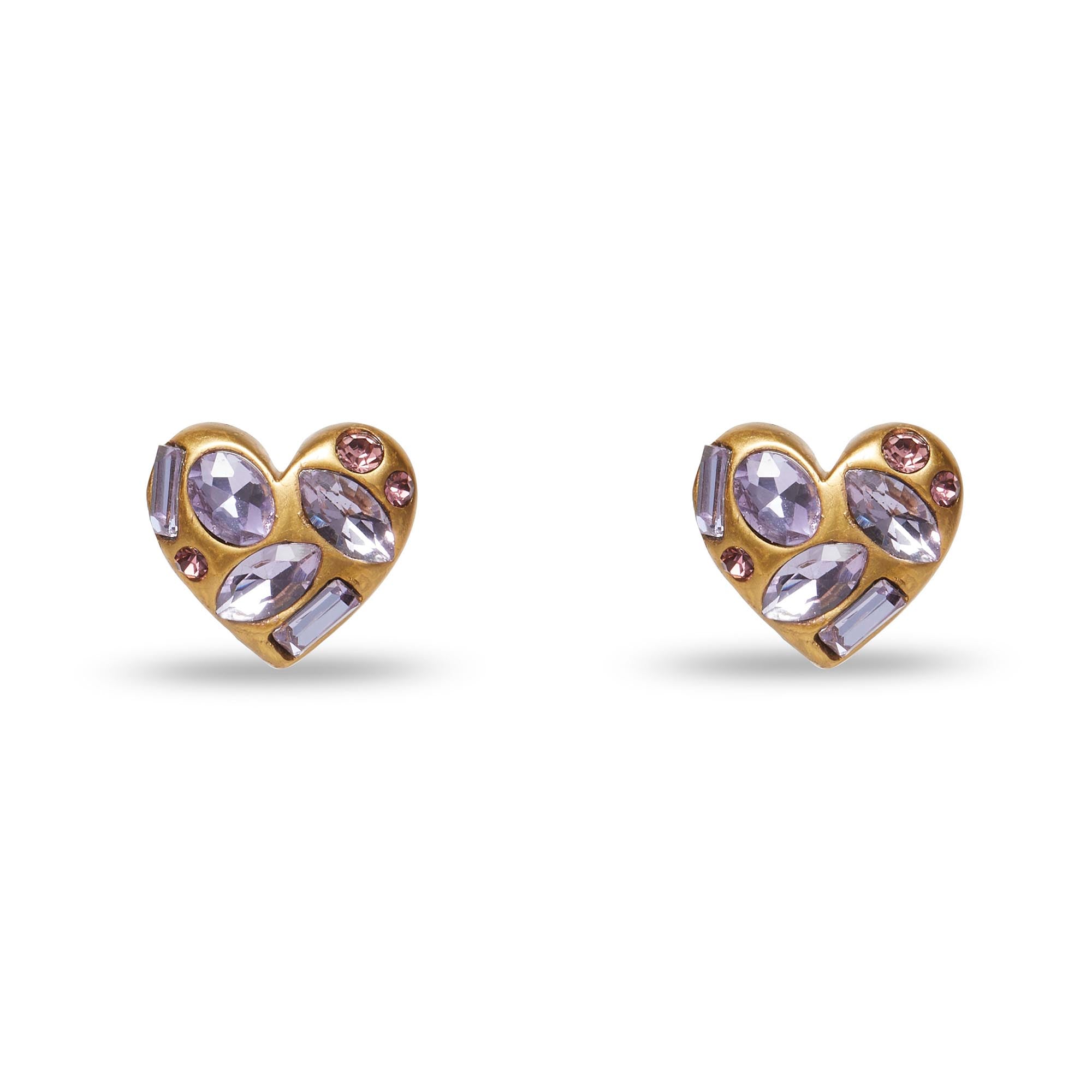 ∙ 14k gold-plated, heart-shaped earrings∙ Hand-set with oval, baguette, round, and marquise lilac stones∙ Measures 1 1/5" by 1 1/5"∙ Surgical steel post ∙ Store in our custom striped pouch