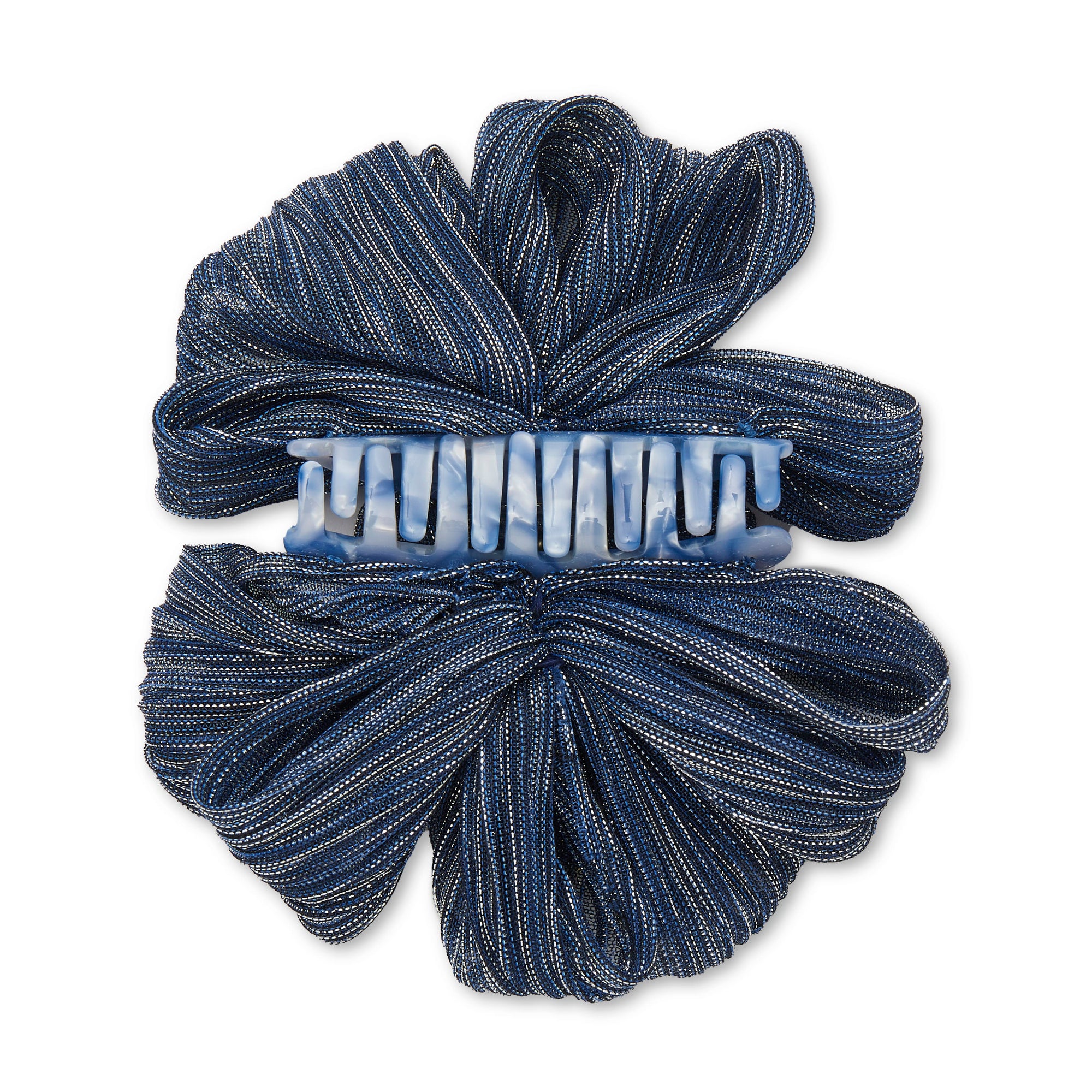 ∙ Imperial blue metallic poly-blend pleated, ruched ribbon