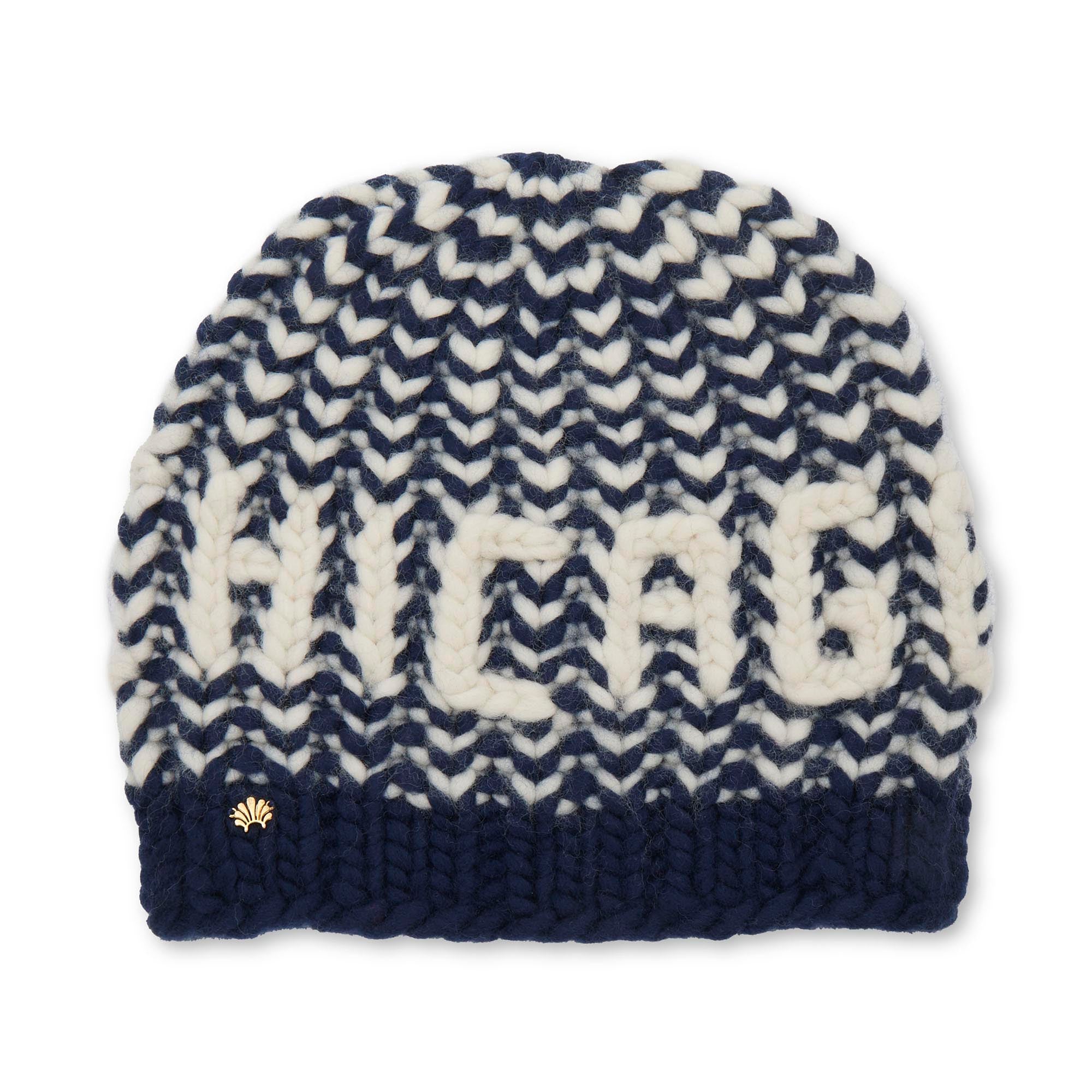 ∙ "CHICAGO" chain-stitched in ivory wool