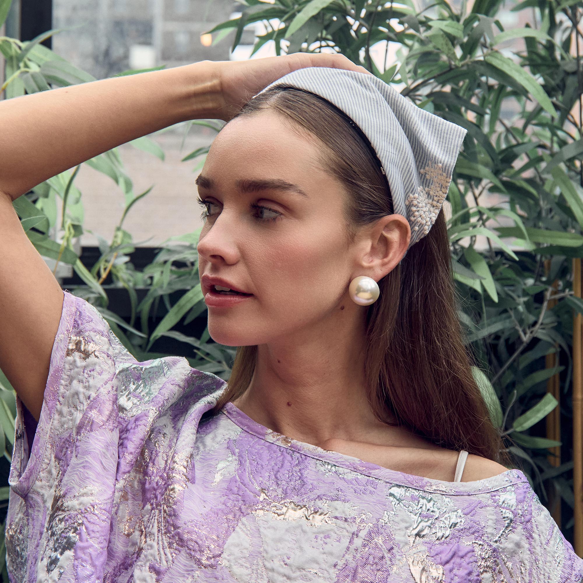 The Jackie Handkerchief Headband, inspired by Jackie O's iconic wardrobe, mimics a handkerchief tied around your head for an instantly chic look.
