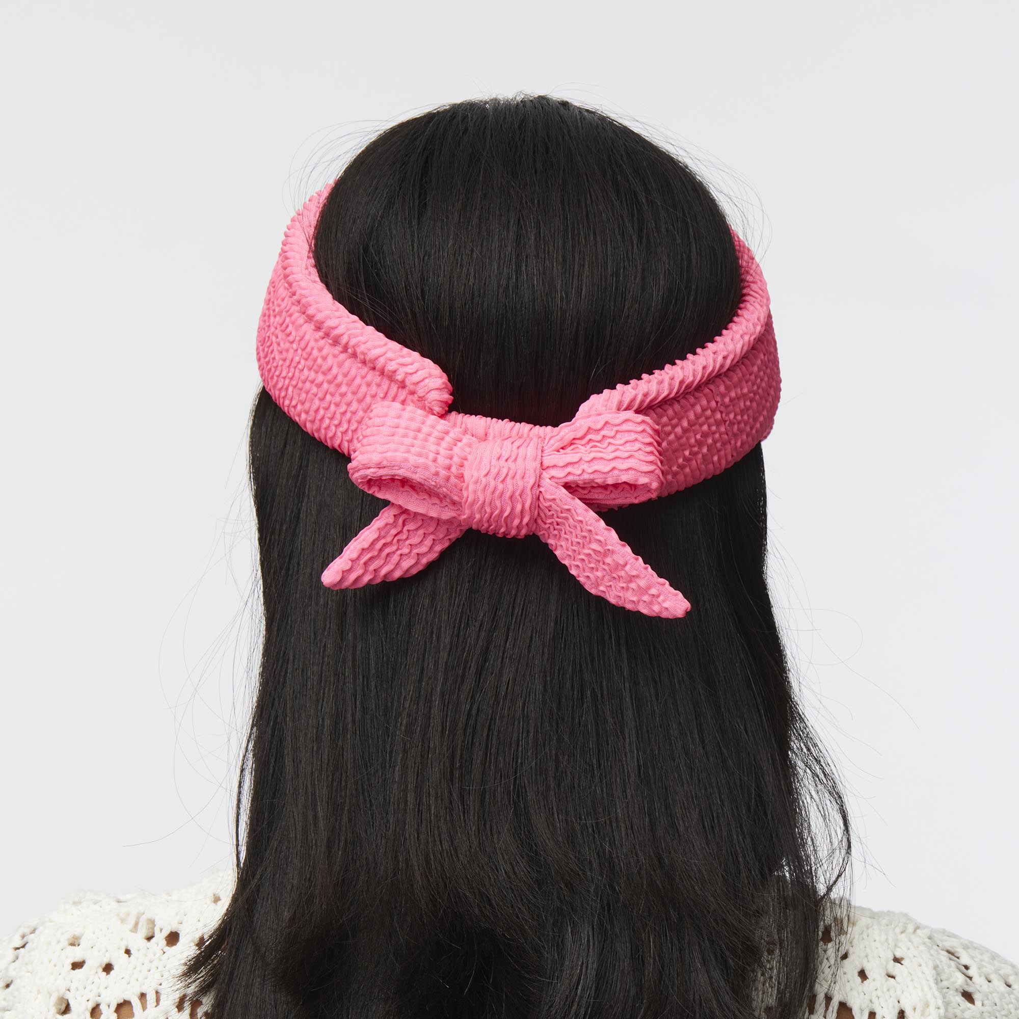 ∙ Flamingo ruched poly blend∙ 20.5" circumference∙ Elastic back for adjustability finished in a bow∙ Lined with our signature crown logo cotton lining∙ Trademark logo charm∙ Spot clean