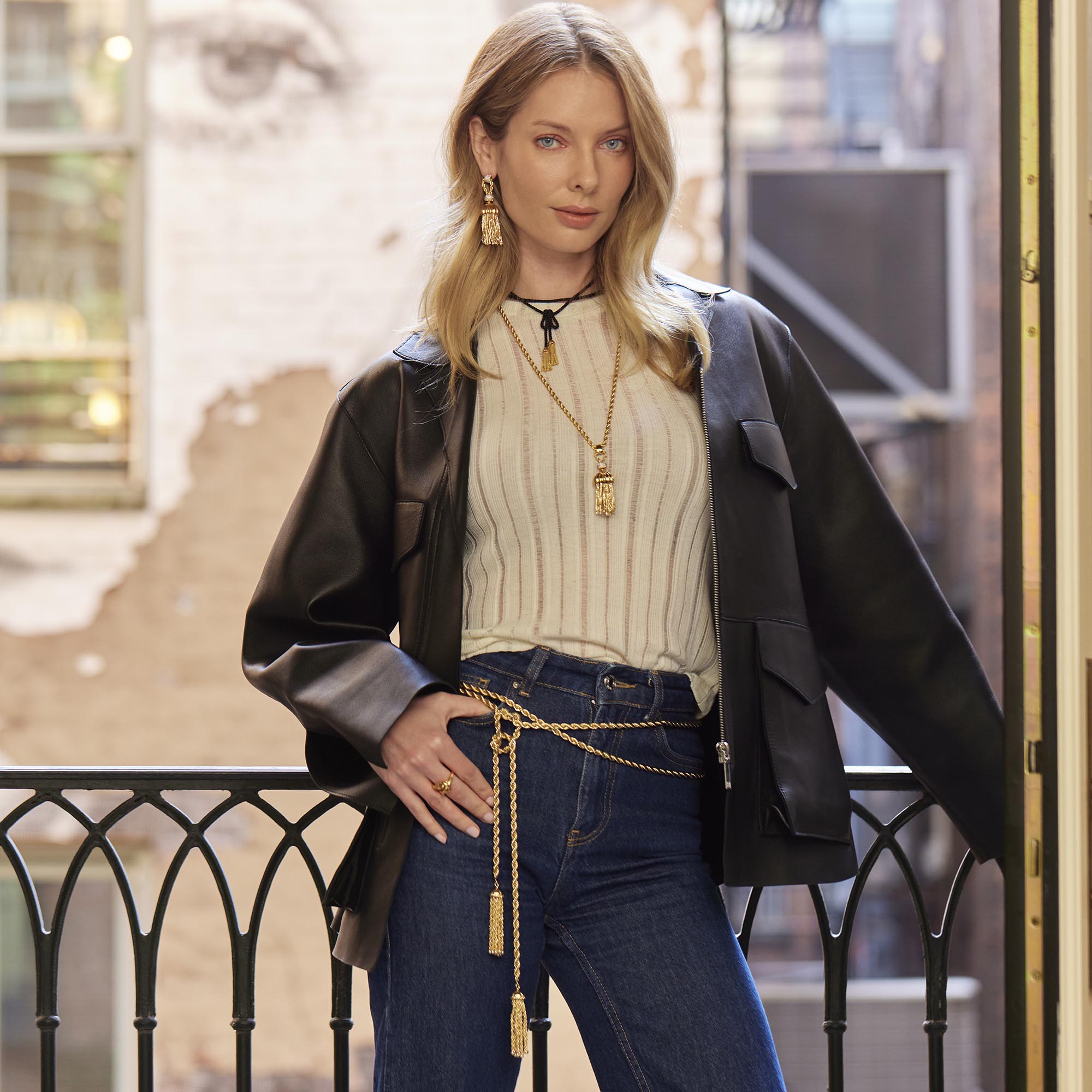 Our Chateau Rope Tassel belt is a classic, golden chain belt.