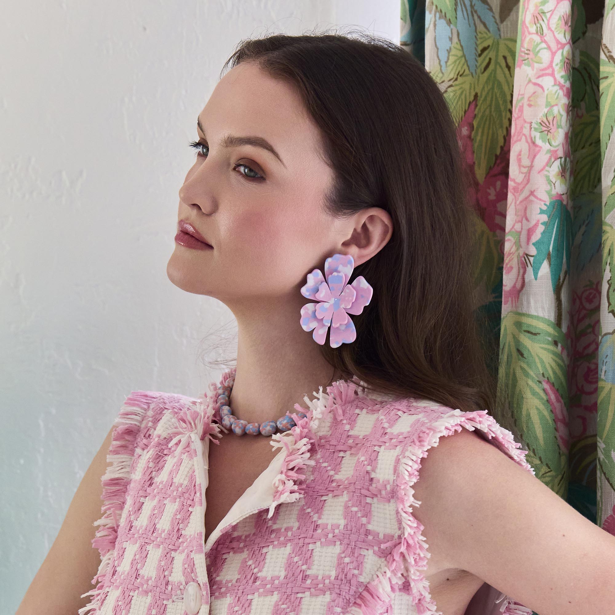BLUSH MIST HIBISCUS EARRINGS - Lele Sadoughi