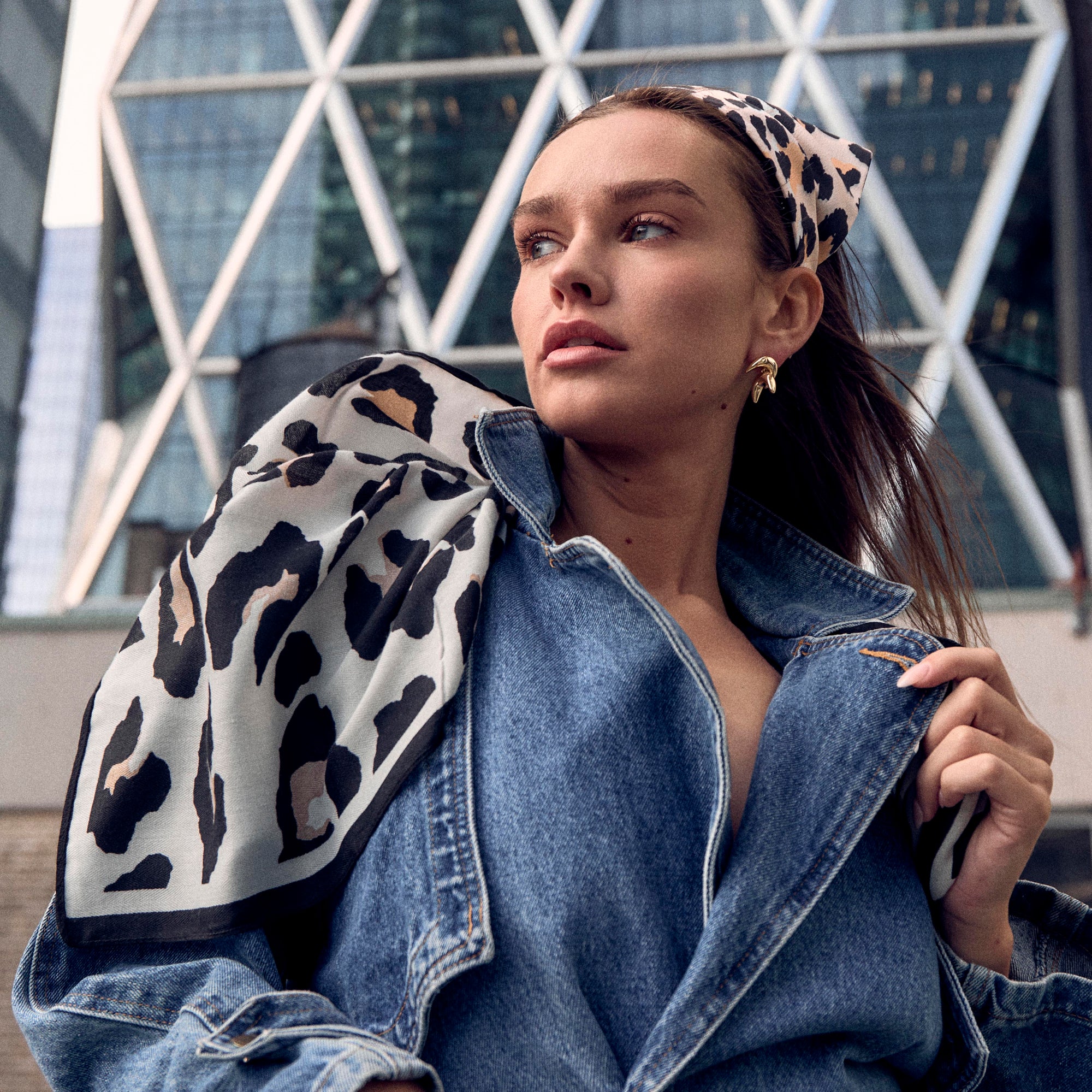 The Jackie Handkerchief Headband, inspired by Jackie O's seaside wardrobe, mimics a handkerchief tied around your head for an instantly chic look.