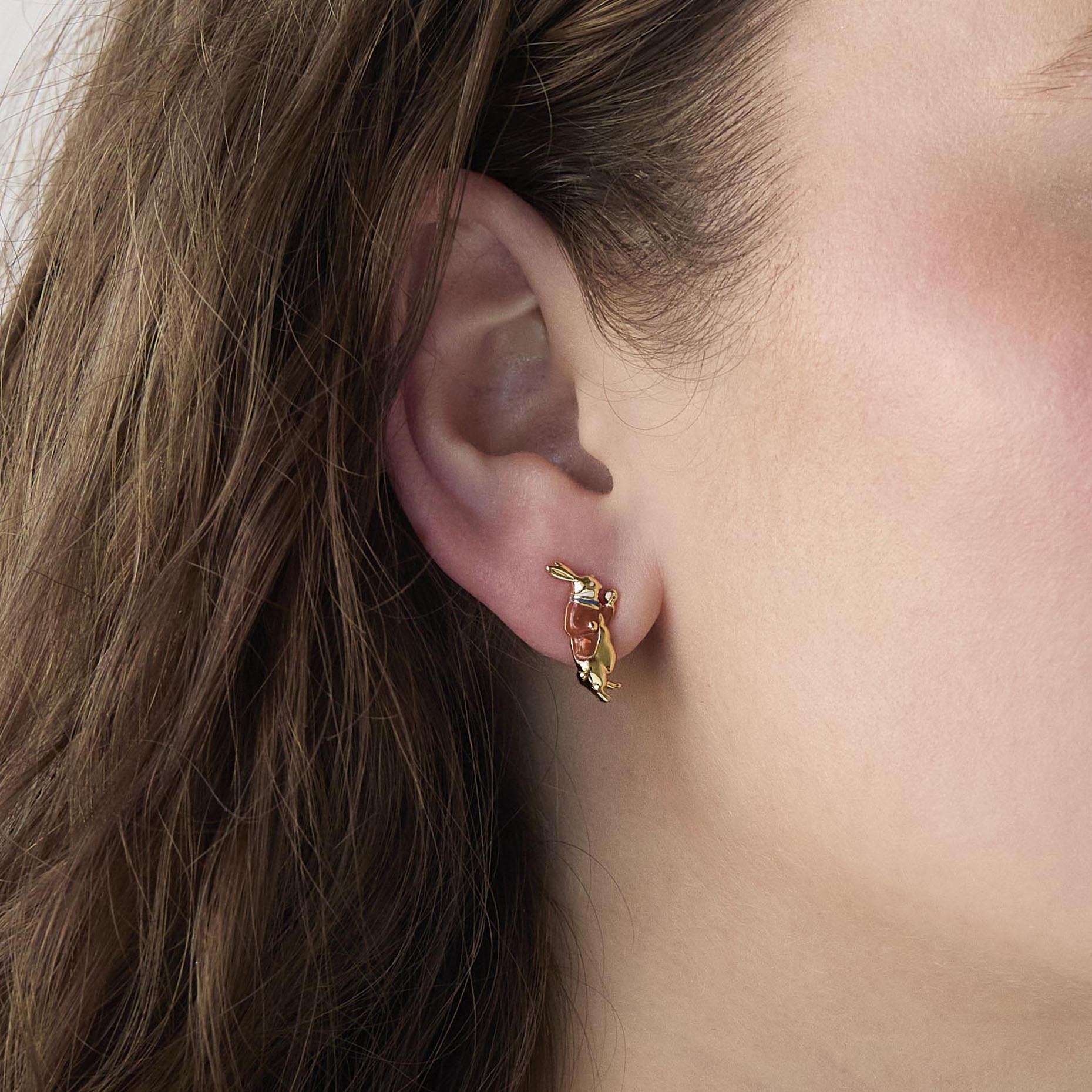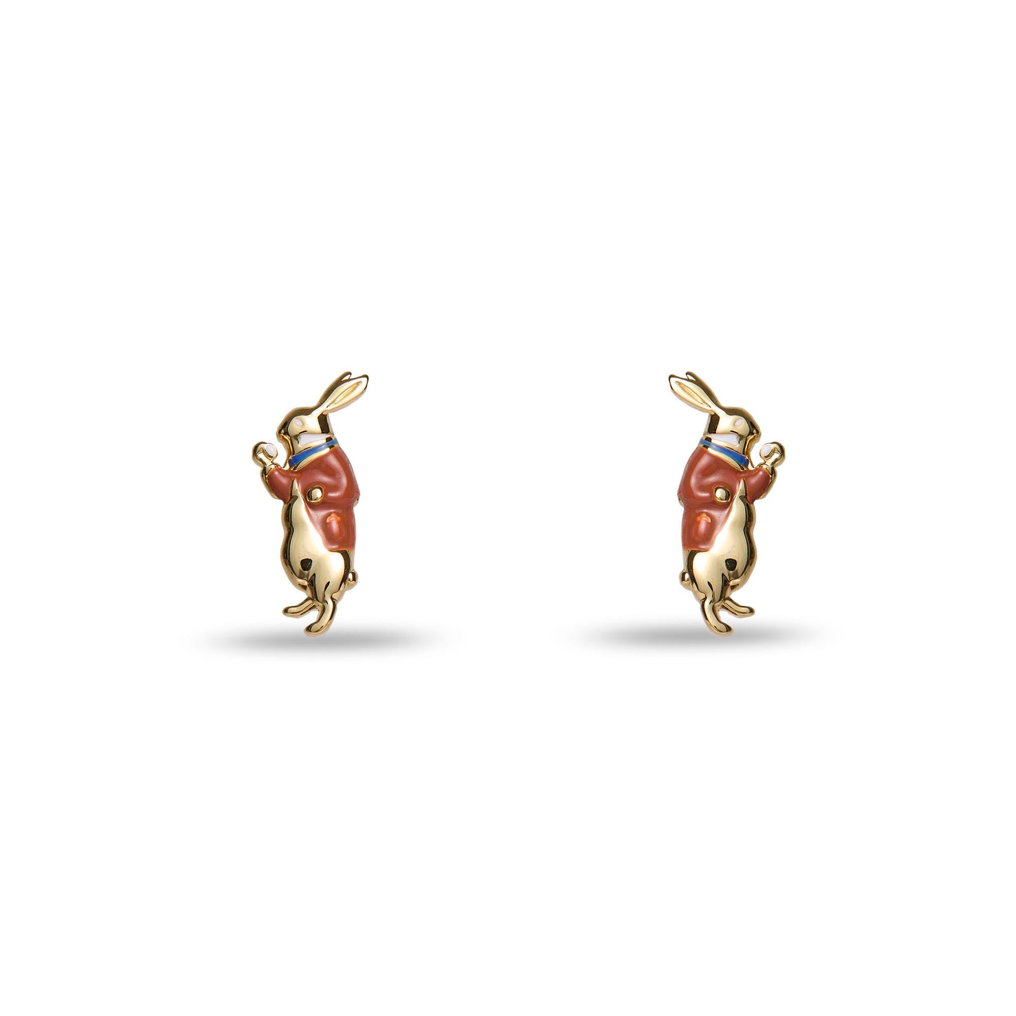 ∙ 14K gold-plated rabbit charms with a red enamel jackets