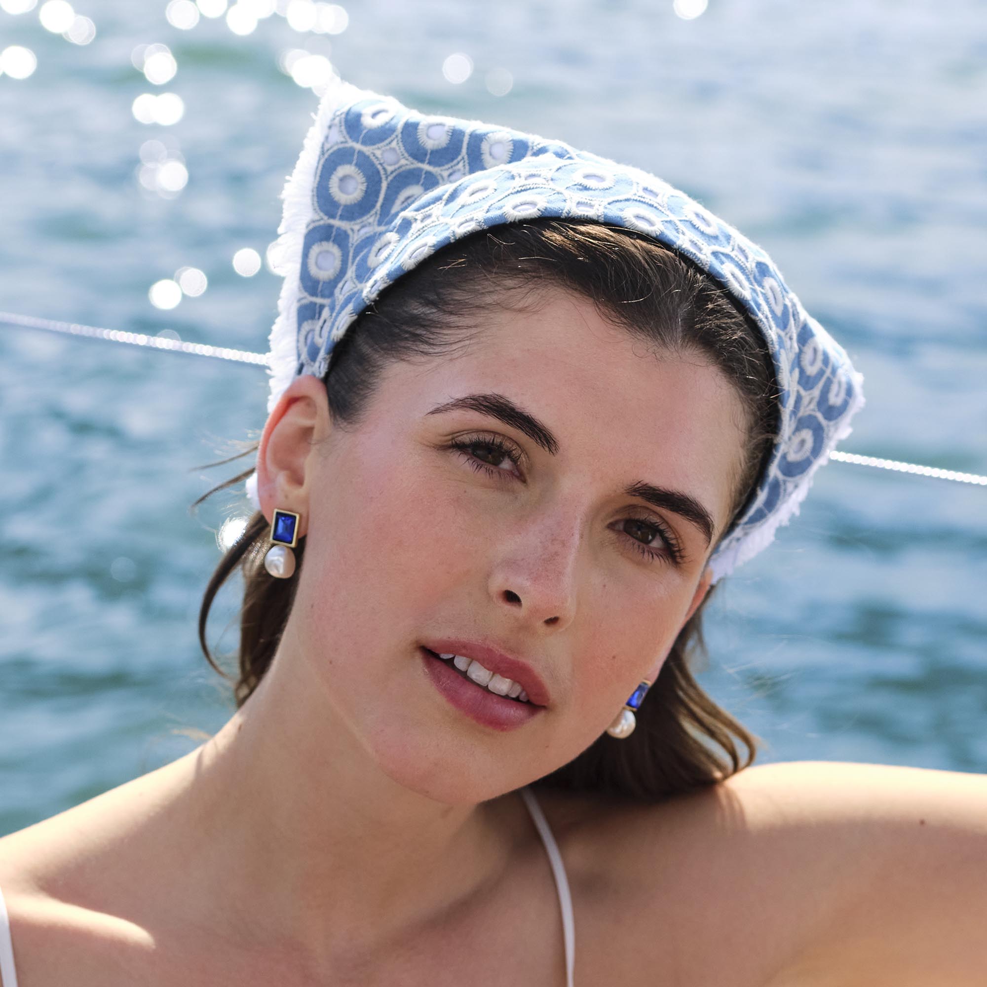 Introducing the Jackie Handkerchief Headband, inspired by Jackie O's seaside wardrobe, designed to mimic a handkerchief tied around your head for an instantly chic summer look.